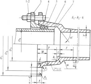 1-螺(luó)母 2-螺栓 3-壓蘭 4-膠圈 5-支撐(chēng)圈 6-管體承口 7-管體插口
